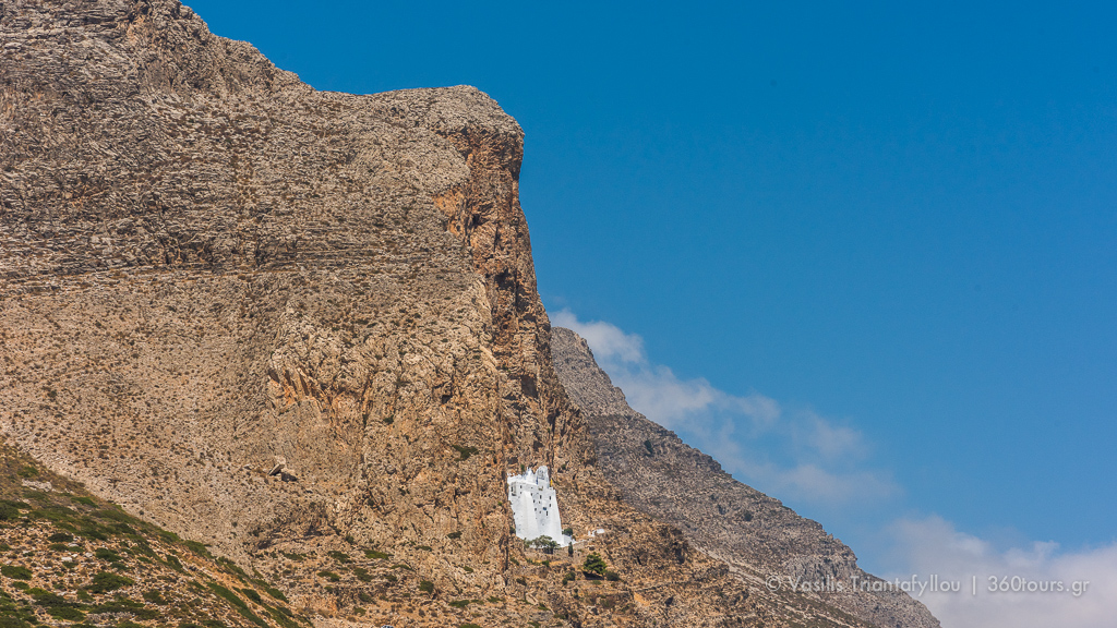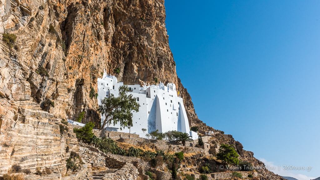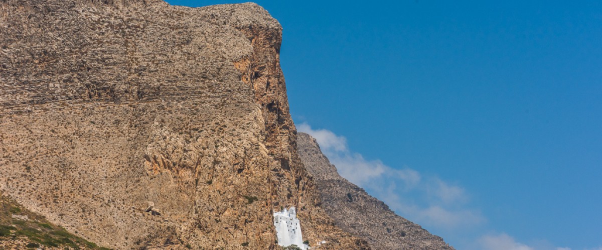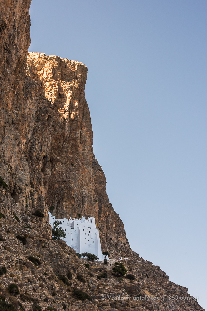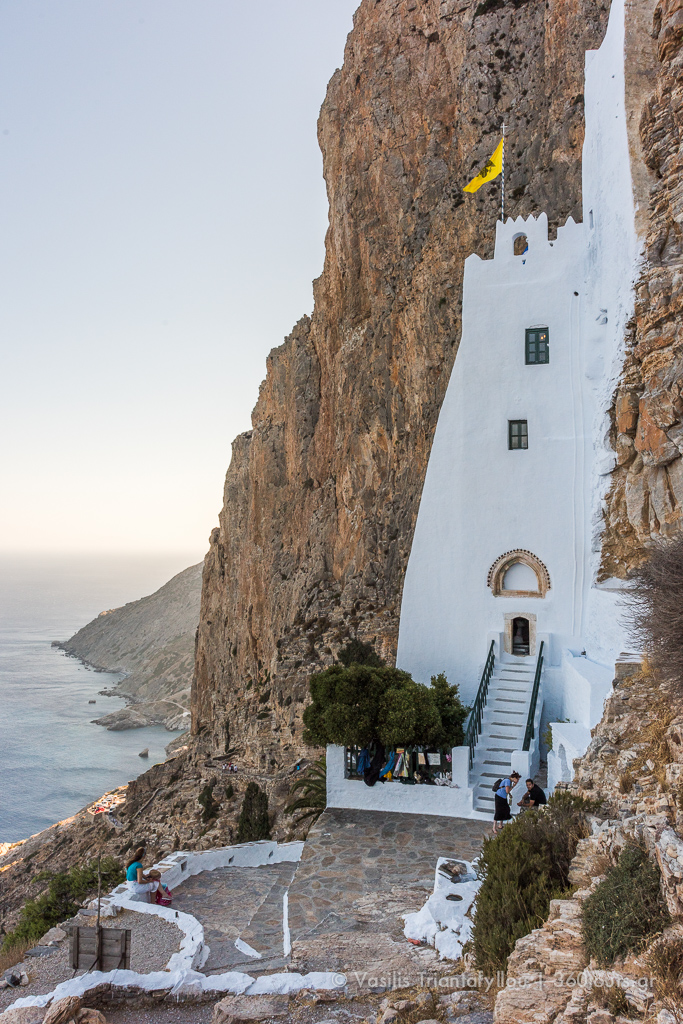 Μονή Παναγίας της Χοζοβιώτισσας στην Αμοργό, σήμα κατατεθέν του νησιού, μνημείο ύμνος στην ανθρώπινη πίστη και θέληση. Βοήθησαν και μερικά πλάνα του Luc Besson στο Απέραντο Γαλάζιο, για να μείνουν έκθαμβοι οι σινεφίλ και να γνωρίσουν ενα από τα πιο άγρια και ενεργειακά φορτισμένα μέρη της Ελλάδας.