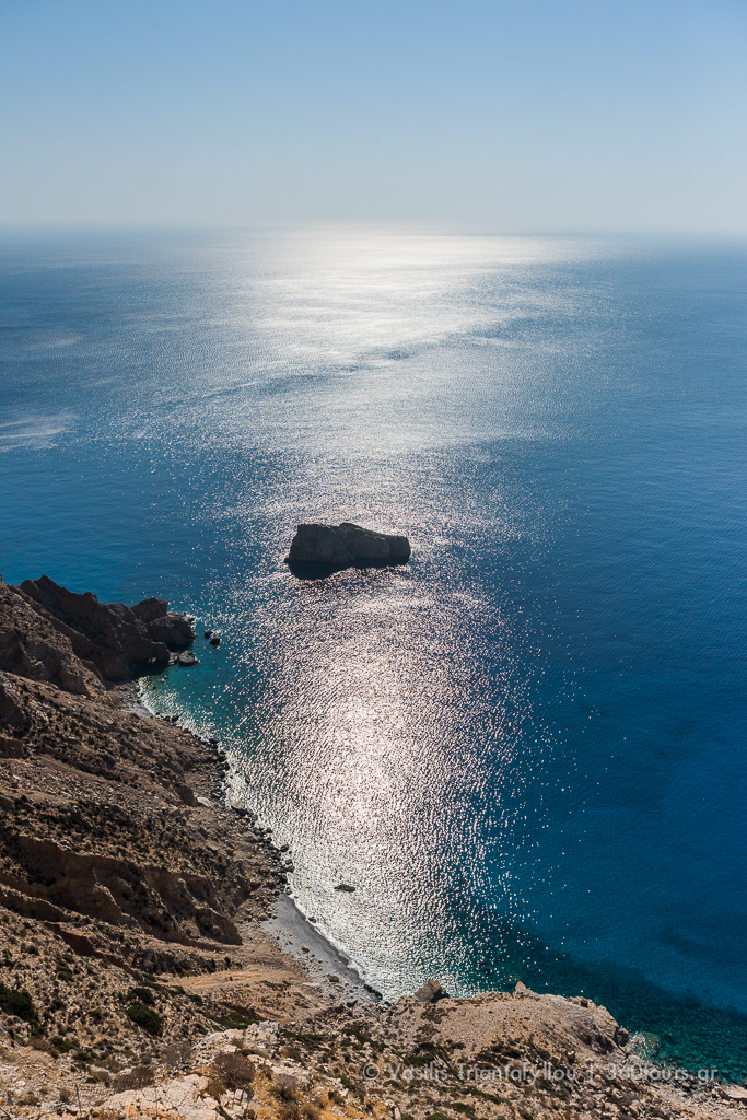 Καθώς κατεβαίναμε, ο Βασίλης που πήγε στην άκρη του γκρεμού να βγάλει ένα από τα περίφημα 360 του, όπως συνηθίζει, βρήκε τα γυαλιά ηλίου μου στα βράχια, έχοντας πέσει προφανώς από το μπαλκόνι, από ύψος 40 περίπου μέτρων, διπλωμένα σαν να ήταν σε βιτρίνα μαγαζιού, χωρίς ούτε μια γρατζουνιά, ένα χιλιοστό κυριολεκτικά πριν πέσουν στη θάλασσα...