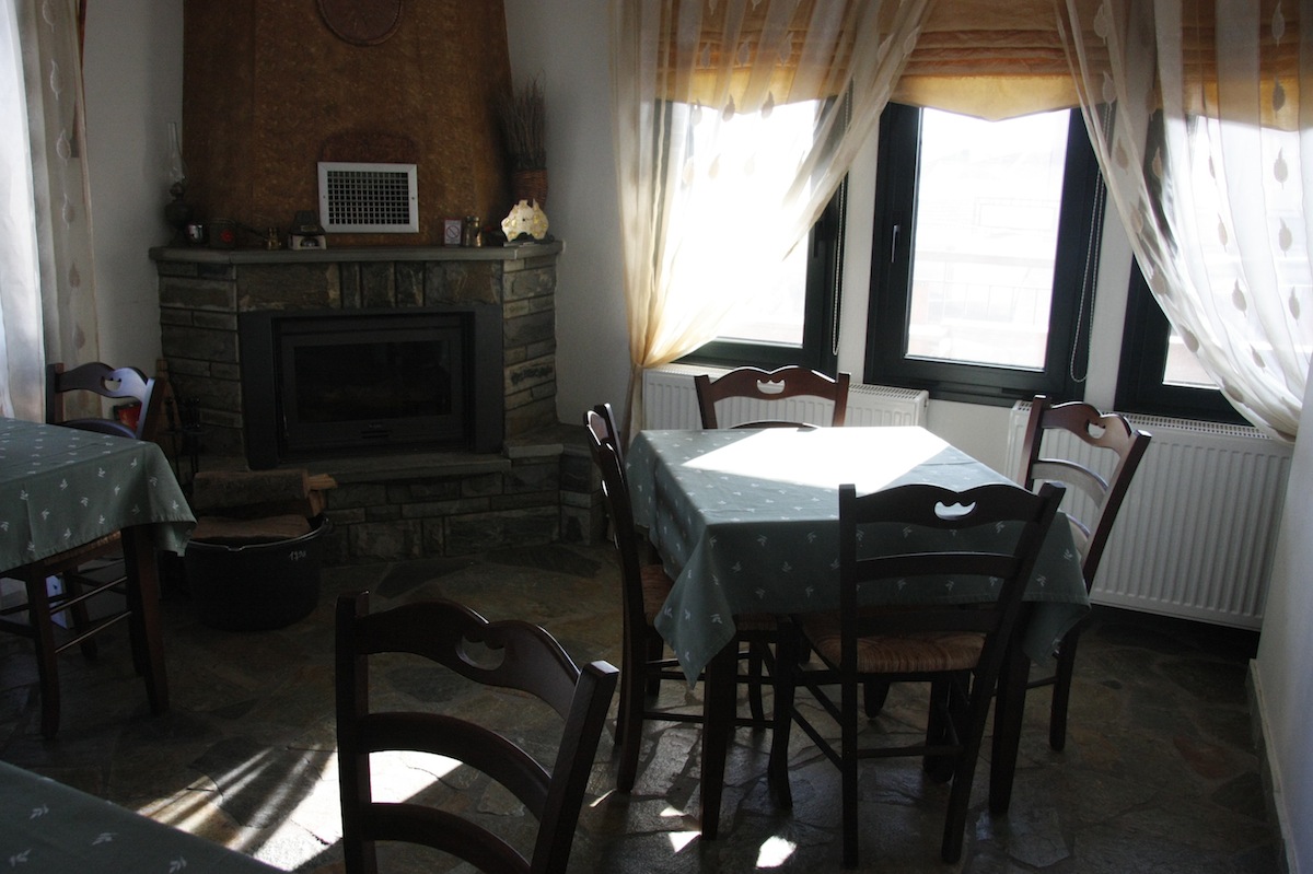 Το ξύλο και η πέτρα κυριαρχεί στο χώρο και από αυτά τα υλικά είναι φτιαγμένα τα δωμάτια, η τραπεζαρία, το ταβάνι, τα έπιπλα και όλα τα αντικείμενα του χώρου. Εμείς μείναμε στο δωμάτιο 7, στο λεγόμενο “Στρυμώνα”. Ο Ξενώνας μας αγκάλιασε και εμείς κουρνιάσαμε στο δωμάτιο μας, ανάψαμε το τζάκι μας, βγήκαμε στο μπαλκόνι - παρατηρητήριο από όπου χαζεύαμε την κίνηση του χωριού και μας φίλεψε από τα καλύτερα πρωινά που έχουμε φάει.