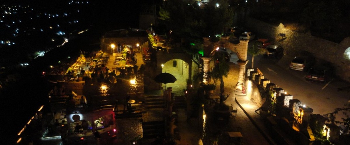 Μπορείς,κυριολεκτικά, να καθίσεις παντού! Κάνοντας μια βόλτα στο κάστρο περνάς από περάσματα και καμάρες, ανεβαίνεις σκαλιά που οδηγούν σε απομονωμένα τραπέζια πάνω στους πύργους, συναντάς ένα αμφιθέατρο στο οποίο μπορείς να χορέψεις, βρίσκεις πανοπλίες, θρόνους και αγάλματα... Έχει όλα αυτά που μπορεί να φανταστεί κάποιος πως ίσως να υπήρχαν στα κάστρα των παλαιότερων εποχών. Όμως, δεν παύει να εξυπηρετεί τις σύγχρονες ανάγκες του πελάτη, προσφέροντάς του άμεση εξυπηρέτηση και άνετο parking μέσα στο κάστρο.