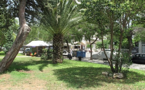 Το ενδιαφέρον με αυτή την πλατεία- πάρκο είναι η ησυχία και η άπλα της. Σε κανένα σημείο της δεν έχεις την επιθετική αίσθηση των διερχόμενων οχημάτων καθώς όλα τα δρομάκια που την περιβάλλουν είναι στενά με πολύ μειωμένη κυκλοφορία και φασαρία. Καθόλου μαγαζιά και βιτρίνες, τεράστια δέντρα και φρεσκοκουρεμένα γρασίδια, γήπεδο τένις (με αισθητική 70) και περιφραγμένη παιδική χαρά (πέρυσι έβαλαν φωτιά στο σπιτάκι του φύλακα), περιπτεράς zhen που τα έχει όλα (απο νεσκαφέ μέχρι οδοντικό νήμα) καθαρά παγκάκια και φρόνιμα σκυλάκια (περπατάς χωρίς αναπάντεχα υποπόδια δωράκια) είναι το τέλειο σκηνικό για μια ήσυχη βόλτα και χαλαρό διάβασμα εφημερίδας (ηλικιωμένοι να σχολιάζουν παθιασμένα την πολιτική επικαιρότητα). Η ευρύτερη περιοχή είναι ένας αρκετά καλοσχηματισμένος λοφίσκος που κοιτάζει τα τουρκοβούνια με αποτέλεσμα να νοιώθεις σχεδόν πάντα ενα ελαφρύ αεράκι το καλοκαίρι και τον χειμώνα να μπουκώνεις με την καπνούρα απο τα τζάκια των γειτόνων.