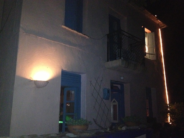 Φτάσαμε λοιπόν, μετά από καμιά 30αριά σκαλιά, σε ένα μεγάλο κήπο με τραπεζάκια και ένα μεγάλο δίπατο σπίτι στη μέση: The Skala Bar!!