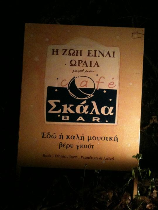 Αφού έχουμε σταμπάρει 2-3 που μας άρεσαν στη διαδρομή, λέμε να το ρίξουμε στη τύχη, που τελικά μας ήθελε, και καταλήξαμε στα κάτω κάτω σκαλοπάτια του Σκάλα bar.